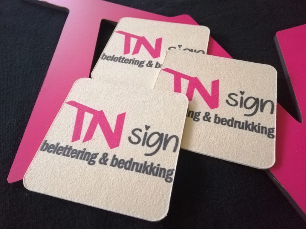 Verkrijgbaar in het rond of vierkant. Enkel of dubbelzijdig gedrukt, al vanaf 25 stuks leverbaar.